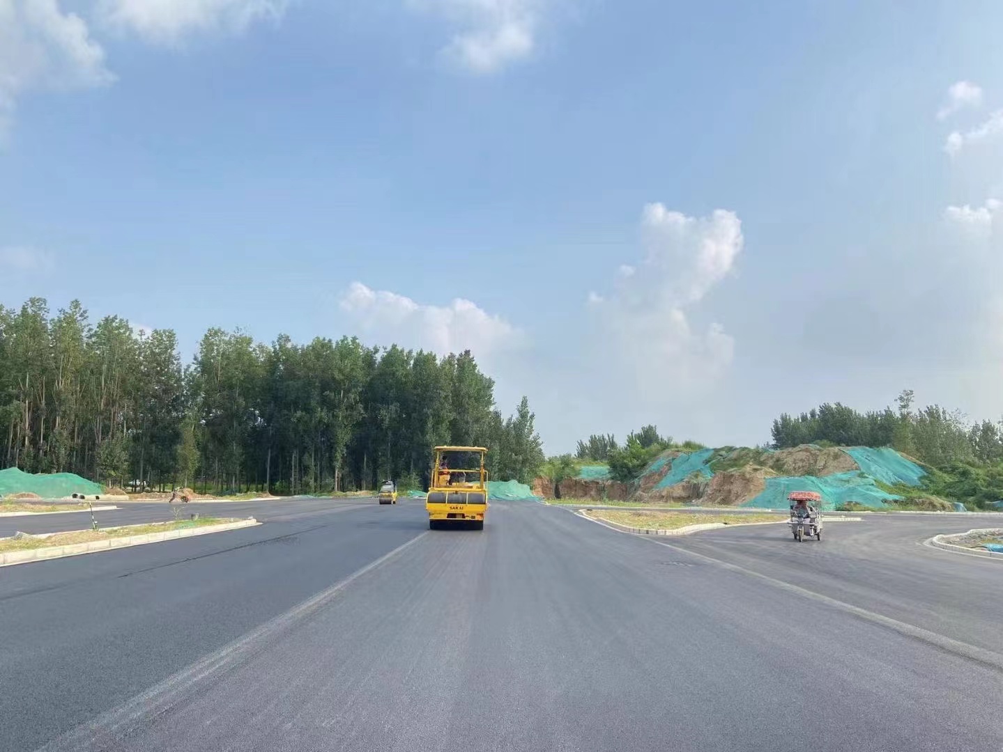 铺设均匀后,根据实地环境,修补面积的大小和深度,选择适当的压实工具和方法进行压实。如人工用铲背压实、人力夯、振动平板夯压实、压路机压实等。